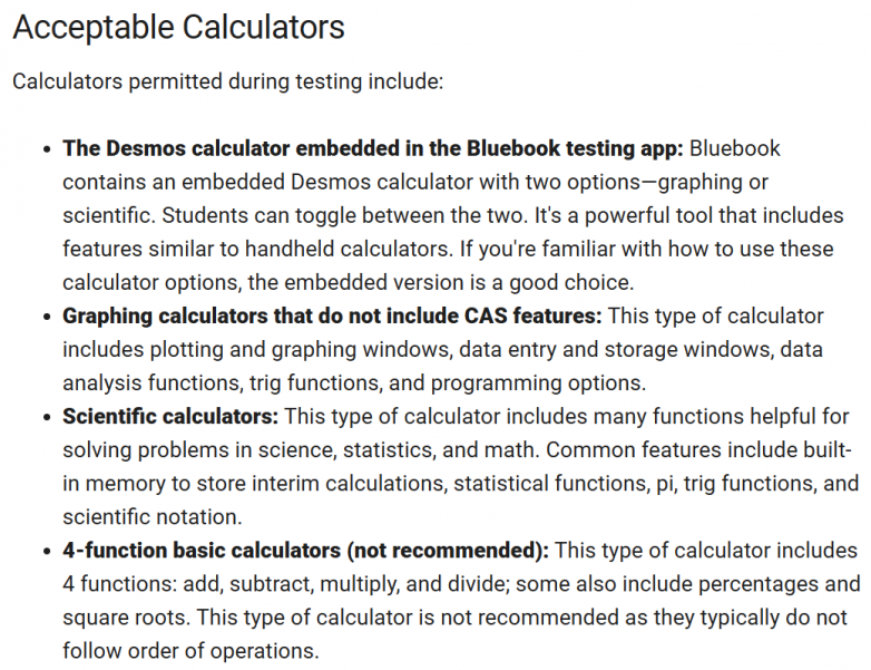 4. 计算器:建议仍携带一个符合规定的物理计算器以防万一。 从2025年8月考试开始,禁止使用具有CAS功能的计算器,检查自己的计算器型号。