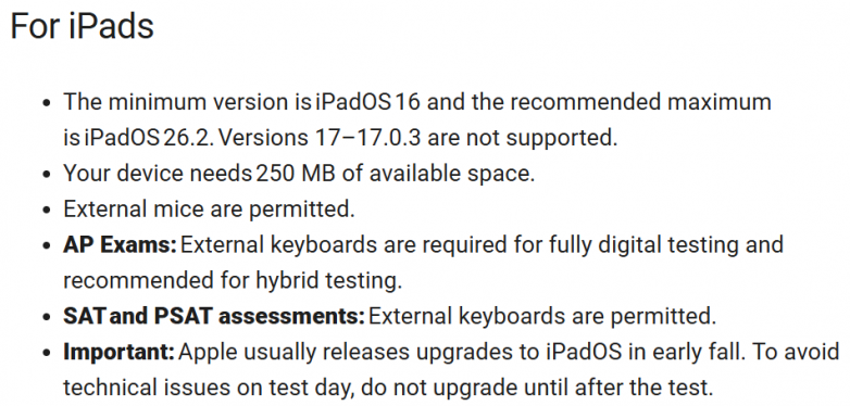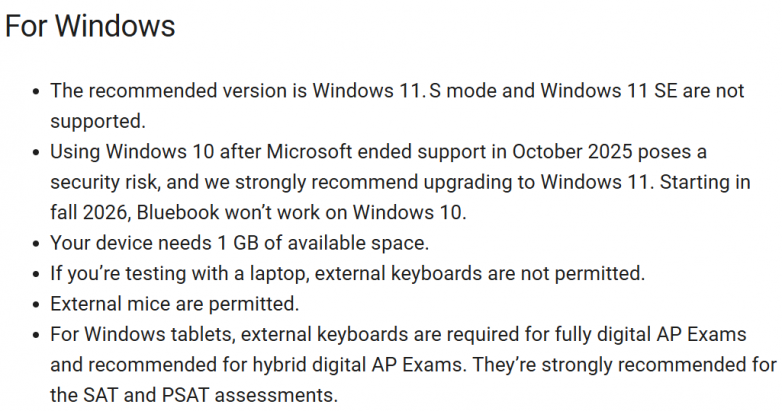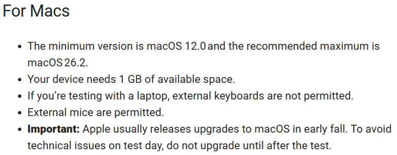 3. 电脑/平板:如果是使用个人设备(Bluebook),所带考试设备,官方要求学生在考试前一定要安装好最新版Bluebook应用程序并完成设置。确保电量充足(至少能撑3小时以上),并充满电。